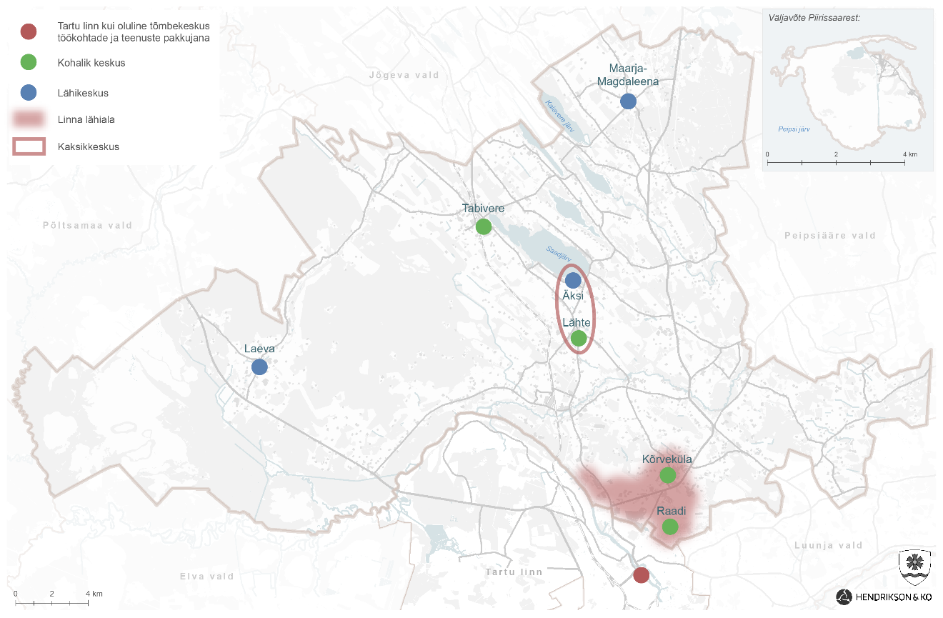 Kohaliku keskusena arenevad edasi Kõrveküla ja Tabivere, kaksikkeskusena Lähte-Äksi. Perspektiivis kujundatakse kohalikuks keskuseks ka Raadi. Laeva ja Maarja-Magdaleena jäävad lähikeskusteks.